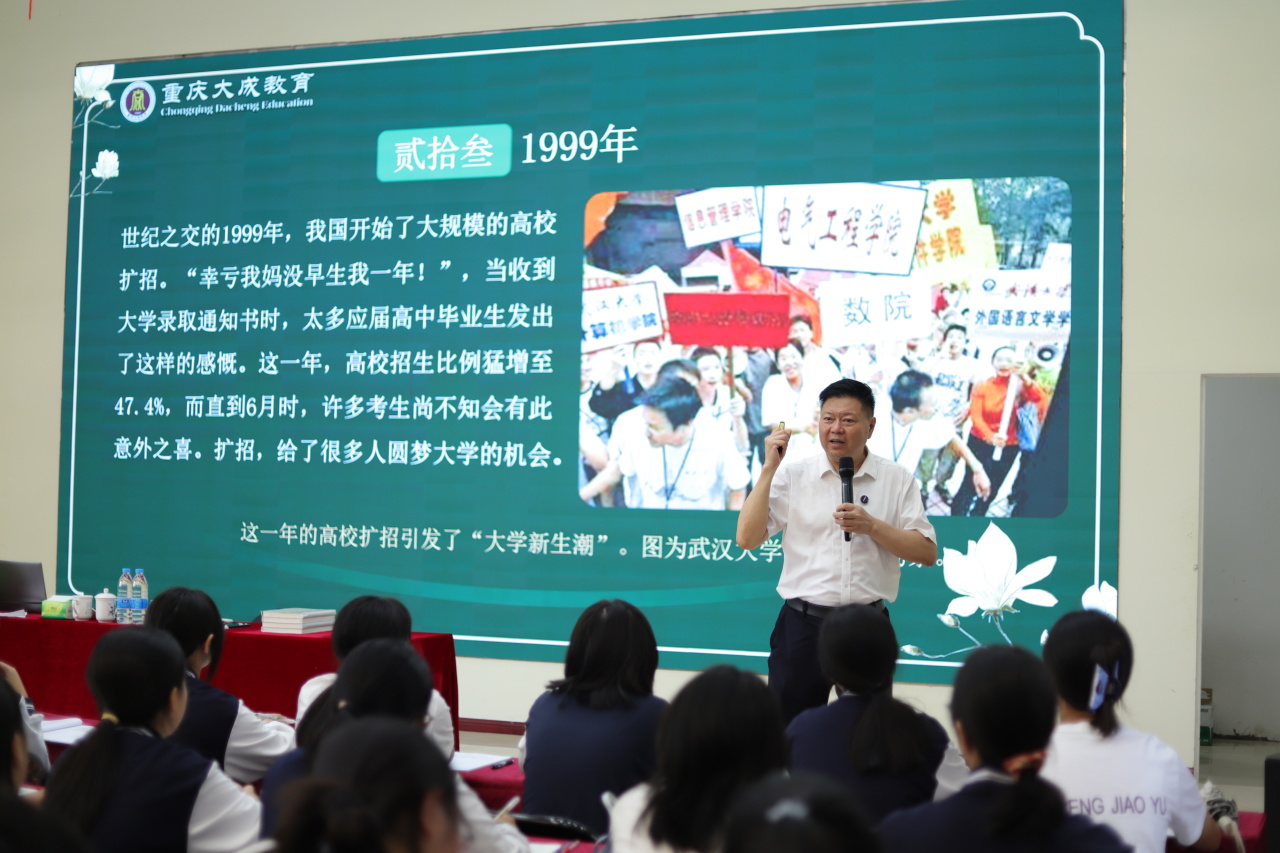 项目式学习 | 48年高考:一个国家命运的拐点 千百万个人生的转折发表时间:2025-10-20 14:17 ![]() 每年夏季,高考总能牵动全社会的目光。从 1977 年恢复至今,这一延续 48 年的考试,早已超越 “升学考核” 的单一属性 —— 它既是国家选拔人才、推动发展的 “战略纽带”,也是无数人突破困境、改写人生的 “希望之门”。 10 月 11 日和 12 日,大成教育集团蒋远彬董事长以《48 年高考:一个国家命运的拐点 千百万个人生的转折》为主题,为大成高中的学子们展开一场跨越时代的精彩分享,从国家发展、个人奋斗到学校担当,层层剖析高考背后的重量与意义。 ![]() 项目式导师蒋远彬简介 重庆大成教育集团董事长 中共党员,重庆大成教育集团党支部书记,北大光华学院、中国人民大学和清华大学EMBA结业。 现任重庆市荣昌区工商联副主席,重庆市民办教育协会中小学专委会常务理事,重庆市荣昌区民办教育协会会长,中国民办教育家协会副理事长。 荣获中国民办教育改革创新杰出人物奖。 “1977 年的高考,不是一次普通的考试,而是国家‘拨乱反正’的重要信号。” 分享开篇,蒋远彬董事长便带领同学们回溯高考的 “初心时刻”。彼时,中断十余年的高考制度正式重启,570 多万怀揣理想的青年放下锄头、离开工厂,重新拿起书本走进考场,最终 27 万余人成功踏入大学校门。这批 “特殊考生” 中,构成了改革开放初期国家急需的 “人才梯队”,为后续的经济腾飞、科技突破埋下伏笔。 随着时代演进,高考的改革始终紧扣国家战略需求。蒋远彬董事长梳理关键节点:1999 年,高校扩招政策落地,每年录取人数从***跃升至***,为市场经济发展储备了大量专业人才;近年来,“新高考选考制” 等改革陆续实施,更是直指芯片、软件等 “卡脖子” 领域的人才培养,让高考成为 “国家需求” 与 “人才供给” 的精准对接器。“高考的每一次调整,都是国家发展的‘风向标’。” 蒋远彬董事长的话,让同学们读懂了这场考试背后的 “国之大者”。 ![]() “高考不仅是国家的事,更是每个普通人的‘人生突围战’。” 分享中,蒋远彬董事长以马云、刘强东的高考故事为例,为同学们诠释 “奋斗” 的真正含义。 ![]() 提到马云,“三战高考” 的韧性令人动容。1982 年,**次高考的他数学仅得 1 分,与梦想的北京大学失之交臂;复读一年后,第二次高考数学仍只有 19 分;1984 年,第三次高考,他的数学终于考到 79 分,虽距本科线仍差 5 分,却因外语专业招生未满被杭州师范学院破格录取 —— 正是这次 “不放弃”,为后来阿里巴巴的诞生埋下了种子。 而刘强东的高考故事,则藏着 “目标明确” 的智慧。1992 年,作为江苏宿迁市高考状元的他,成绩足以报考清华大学物理系,却怀揣 “从政为民” 的理想,毅然选择中国人民大学社会学系。虽然后来发现社会学与 “做县长” 的路径并非直接关联,但人大的学术氛围让他接触到前沿思想,课余时间尝试的 “编程兼职”、“图书销售”,反而让他找到了创业的方向。 “他们的故事告诉我们,高考或许有遗憾,但每一次坚持、每一次选择,都在为未来铺路。” 蒋远彬董事长的解读,让同学们明白:高考的意义不在于 “一次成功”,而在于在挫折中学会成长。 “国家有战略,个人有奋斗,学校则是你们高考路上的‘同行者’。” 课堂上,蒋远彬董事长将大成教育的发展融入高考叙事,让同学们从身边的案例中感受 “教育的温度与力量”。 2022年,大成高中学生在操场摆出“好教育 必大成”的合影 从 2005 年河包镇的创业中学起步,到 2014 年建成大成初中、2015 年建成大成小学,再到 2017 年大成高中的扩建,20 年办学历程,大成教育始终以 “大泽天下学子,成就人生梦想” 为办学宗旨,打造 “低进高出、高进优出” 的育人特色:2017 年,大成初中首届毕业生在全区初三学业调研测试中 “惊艳亮相”—— 前 10 名占 9 人、前 20 名占 19 人、前 100 名占 79 人,一鸣惊人;2020 年,学子朱苑成功考入清华大学美术学院,成为大成高中 “首个清华学子”;近年来,学校还针对高考改革推出推出“五张清单”教学改革,建立了“以入口定出口”的教学质量评价体系,这极大提高了教学质量。 2008年创业中学开学典礼上,蒋远彬董事长致欢迎词 2025年6月,蒋远彬董事长带领大成学子们跨越龙门 ![]() 2025年6月,大成学子们意气风发地奔赴考场 蒋远彬董事长的讲述,不仅让同学们不仅了解了学校的辉煌历史,产生了强烈的自豪感;更让同学们意识到自己的每一次成长,都承载着学校和父母的期望。 分享尾声,蒋远彬董事长引导同学们分享自己的感悟。同学们纷纷表示,这场项目式学习打破了 “高考只是刷题考试” 的刻板印象:“原来高考连接着国家的未来,我们的努力不只是为了自己,也是在为社会做准备。” ![]() 蒋远彬董事长与同学们亲切互动 正如杨同学在分享会上所说:“这场讲座让我重新读懂了高考的重量 —— 它是国家从‘站起来’‘富起来’到‘强起来’的见证者,也是每个普通人靠奋斗改变命运的机会。作为大成学子,我要带着学校的期待,在备考路上踏实走好每一步,通过高考去到更远的地方,成为对社会有用的人。” |